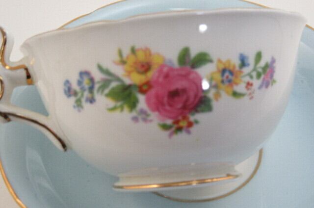カップの内側とソーサーは淡いブルーが施されています。