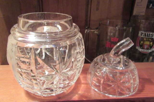 洋ナシ型イギリスアンティークのガラス小物入れ